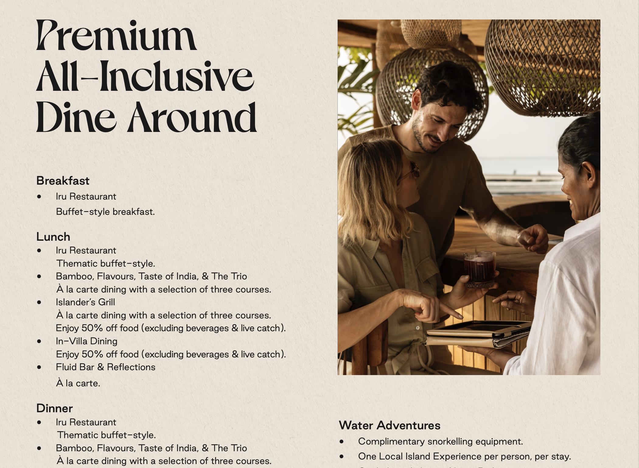 • Factsheets (Übersicht der einzelnen Resorts, deren Hauptmerkmale, Zimmerkategorien & Restaurants/Bars)
